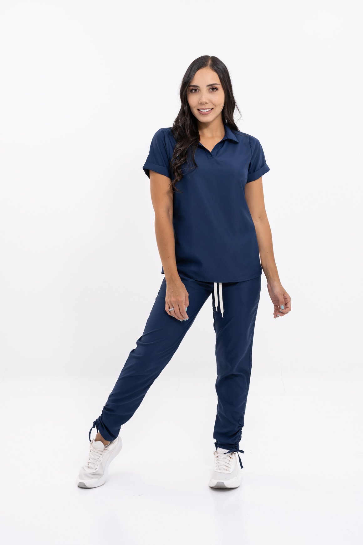 A diferencia de otros uniformes de nuestra colección, su tejido tiene menos elasticidad, proporcionando una estructura más firme y sofisticada.