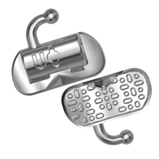 El diseño incluye un gancho esférico que proporciona mayor comodidad al paciente y facilita la colocación de elásticos. La entrada del arco está afilada para facilitar la inserción de los arcos, y el alojamiento para pinza permite un posicionamiento preciso del tubo.